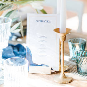 Tipp: Passend zu deinen metallischen Save-the-Date- und Einladungskarten kannst du auch deine Menü- und Tischkarten gestalten. Wie wäre es mit der Menükarte “Gold and Green” oder der Tischkarte “Glanzvoll”?